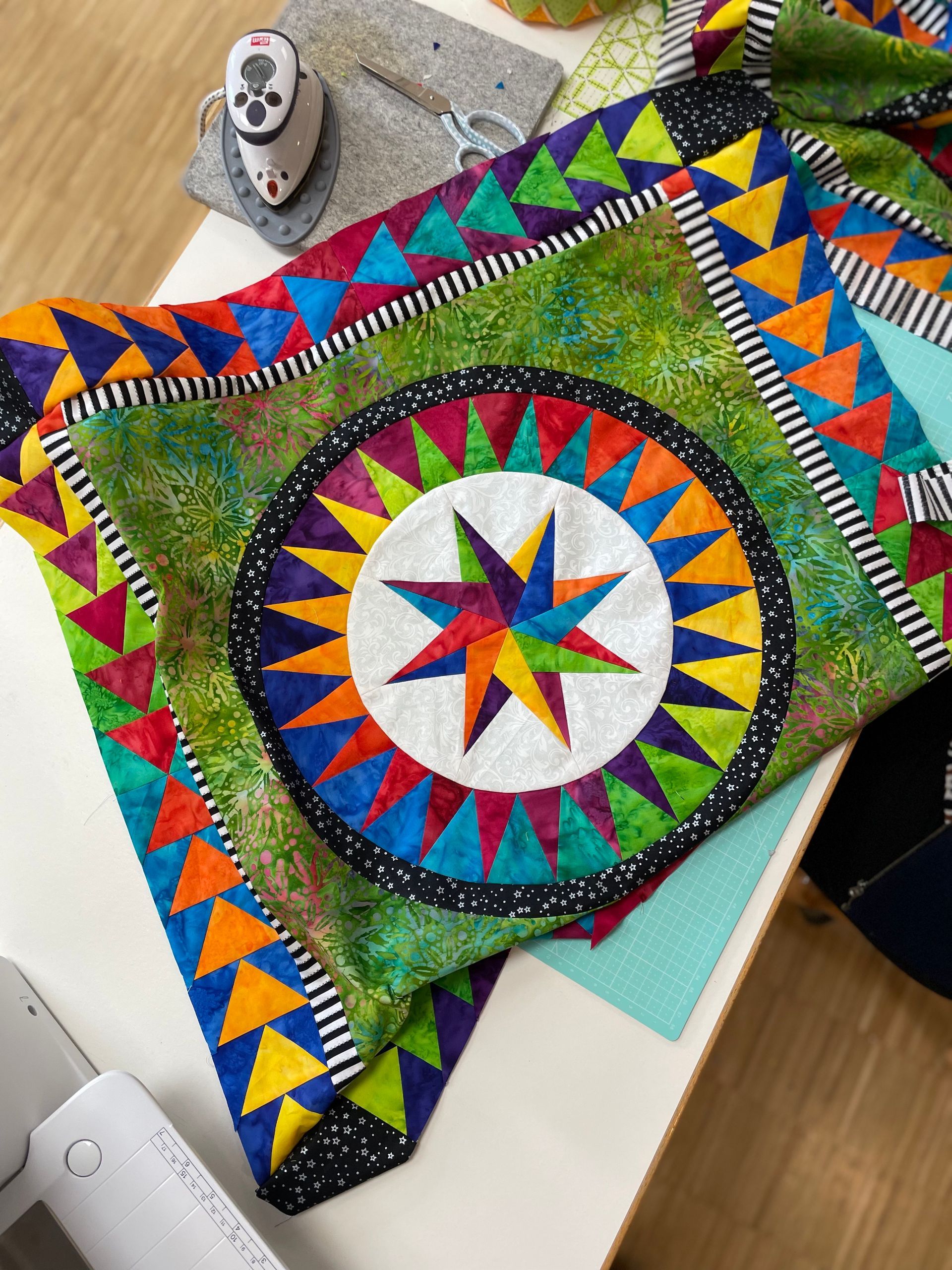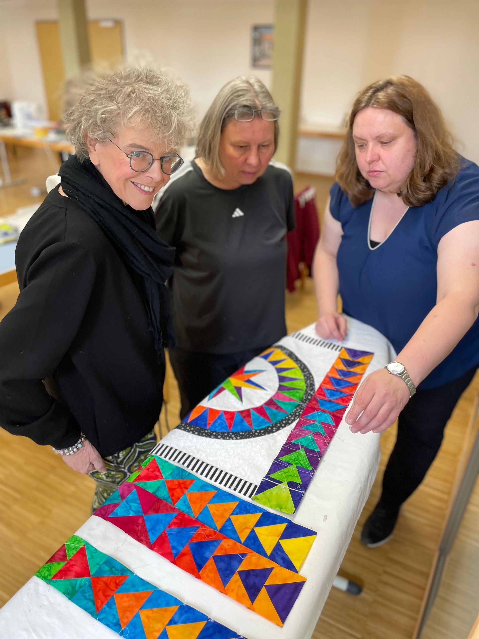50 Quilts und viele einzelne Blöcke durften wir bestaunen, jede Naht voller Erinnerung, jede Farbe ein Stück Persönlichkeit. Zwischen Kuchen, Flammkuchen und Lachen entstand eine Atmosphäre, die man nicht planen kann - sie war einfach da.